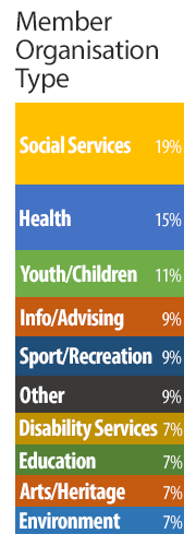 This graph shows the diversity of member organisations registered with Volunteering Auckland. Volunteering covers a wide variety of organisations and opportunities with its accompanying issues and ways of working.